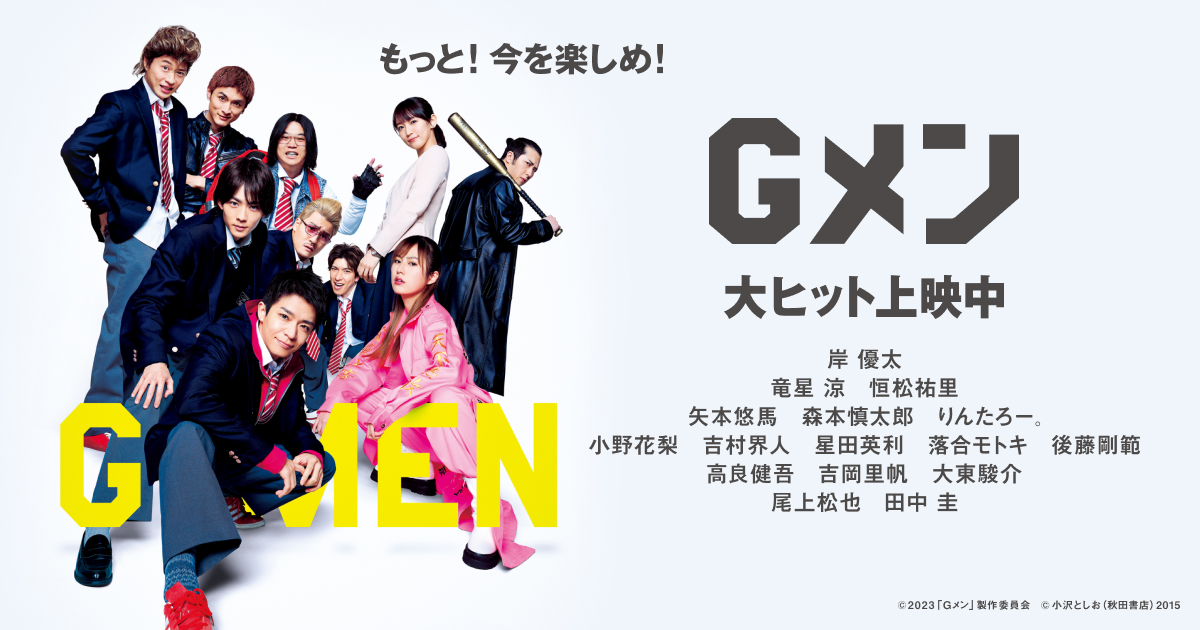 G組メンバーの青春がぎゅっと詰まった予告編が完成しました!#岸優太 #竜星涼 #矢本悠馬 #森本慎太郎 #りんたろー。#吉岡里帆 #高良健吾 #尾上松也… pic.twitter.com/L4lJSDz5XJ— 映画『Gメン』公式 (@gmen_movie) June 25, 2023